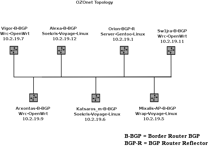 OZOnet gets another operational high speed backbone wifi link bringing the total ammount of BB links up to six. This setup provides optimum speeds to the AWMN community network along with the highest possible availability. The routing setup is with a central BGP reflectror and six border BGP routers. Many thanks to the owners of the other end backbone link nodes !!